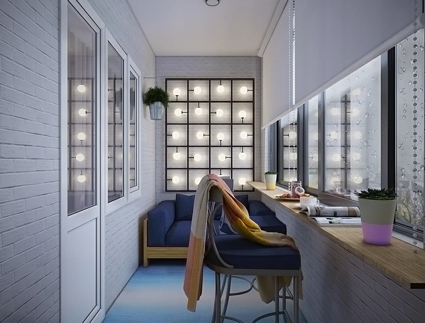 На балконе может быть светло днём. Но осенью и зимой — темно. Поэтому нужно продумать освещение. Причём не одно общее, а зональное. Например, настольная лампа и потолочный свет. Желательно — с регулируемой яркостью. Это важно для зрения и общего комфорта при длительной работе.