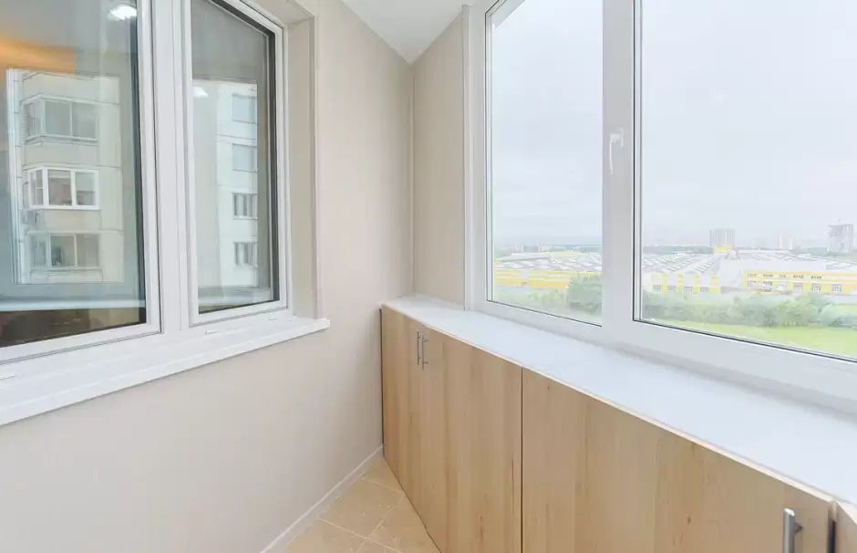 Оригинальное решение: встроенные шкафы под подоконник..Сроки: 1 день-демонта/монтаж окон, 5 дней - обшивка балкона.