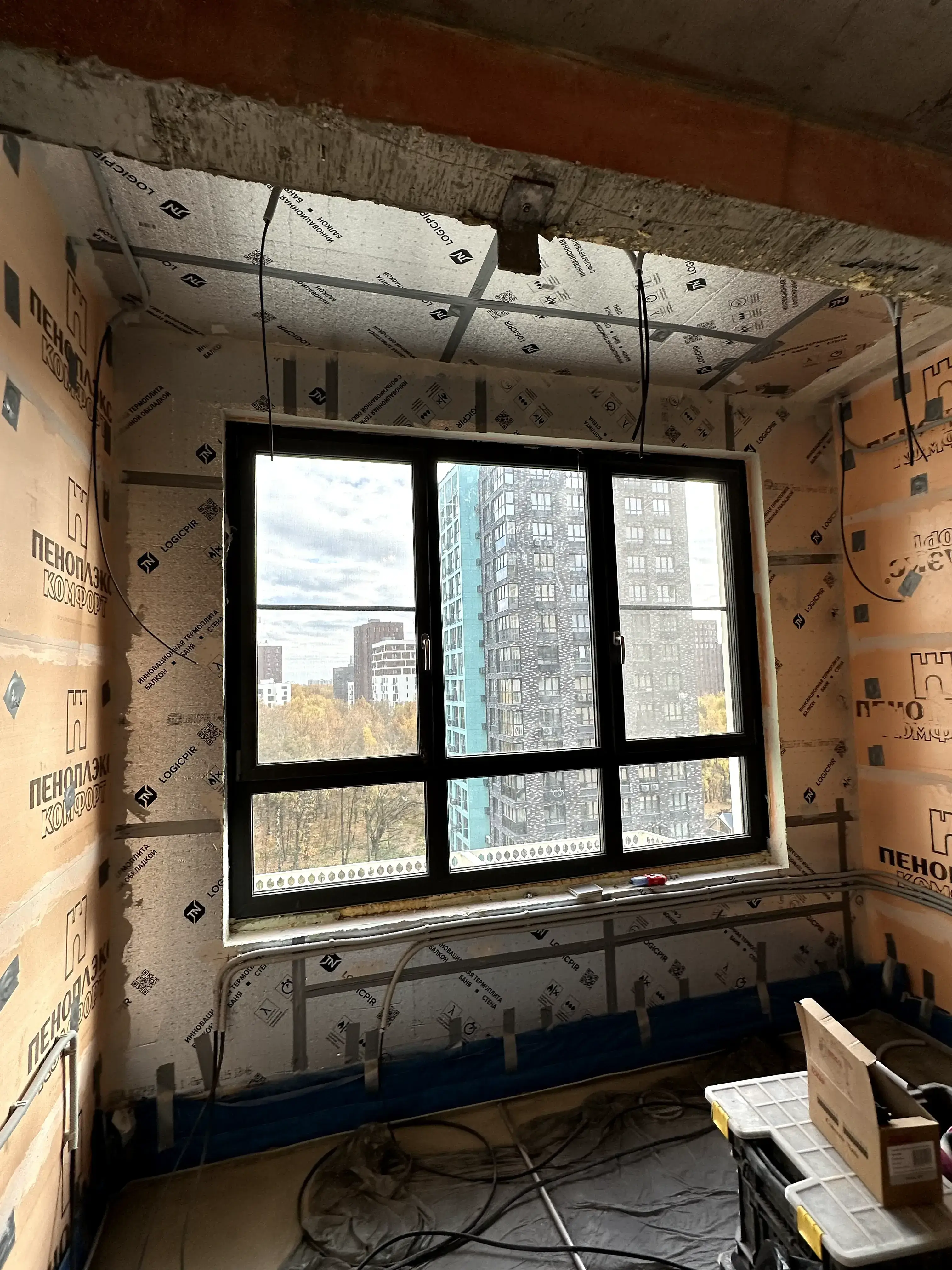 После завершения работ была проведена проверка тепловизором. Температура по поверхности пеноплекса составила около 21,7–22 °C, тогда как бетонные стены дома показали примерно 19,5 °C. Это наглядно подтвердило эффективность системы: утеплённые конструкции лоджии стали теплее основных стен здания.